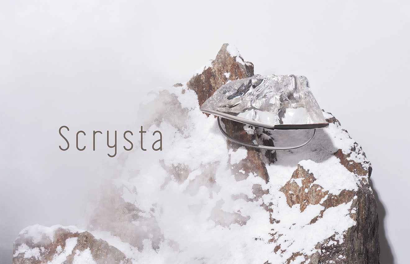 日本の伝統工芸士がひとつひとつ手作りするScrystaのジュエリーは、ロッククリスタル、ターコイズ、クリソプレーズ、オパール、アクアマリン、クンツァイトなどの天然石をふんだんに用い、それぞれの石がもつ個性や、天然のままの色あいを大切に活かした、存在感のあるコンセプチュアルなデザインが特徴です。