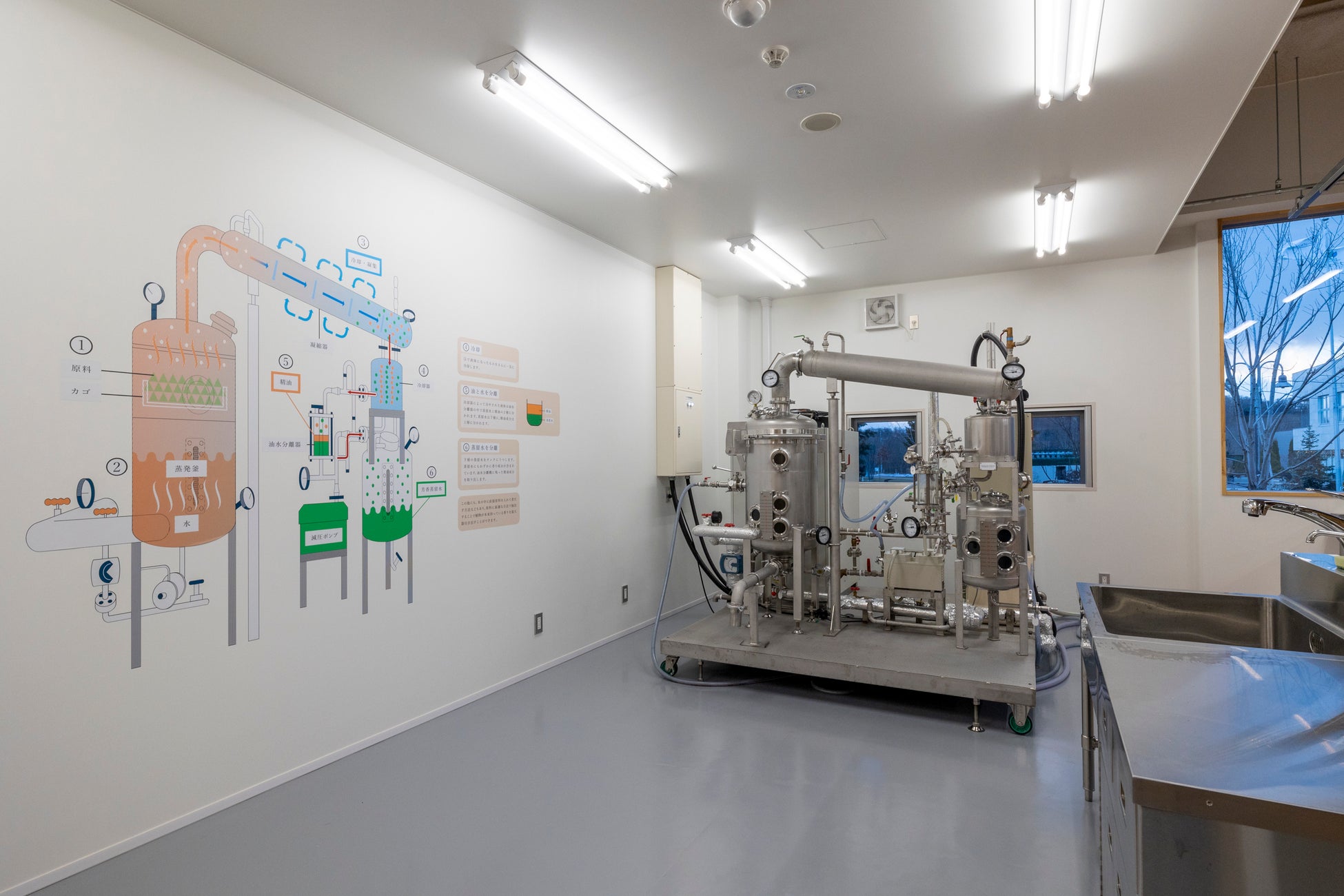 植物を湧水で蒸留し、精油やハーブウォーターを抽出する本格的な蒸留器を備え、季節に合わせた植物を使ったワークショップも開催される予定です。