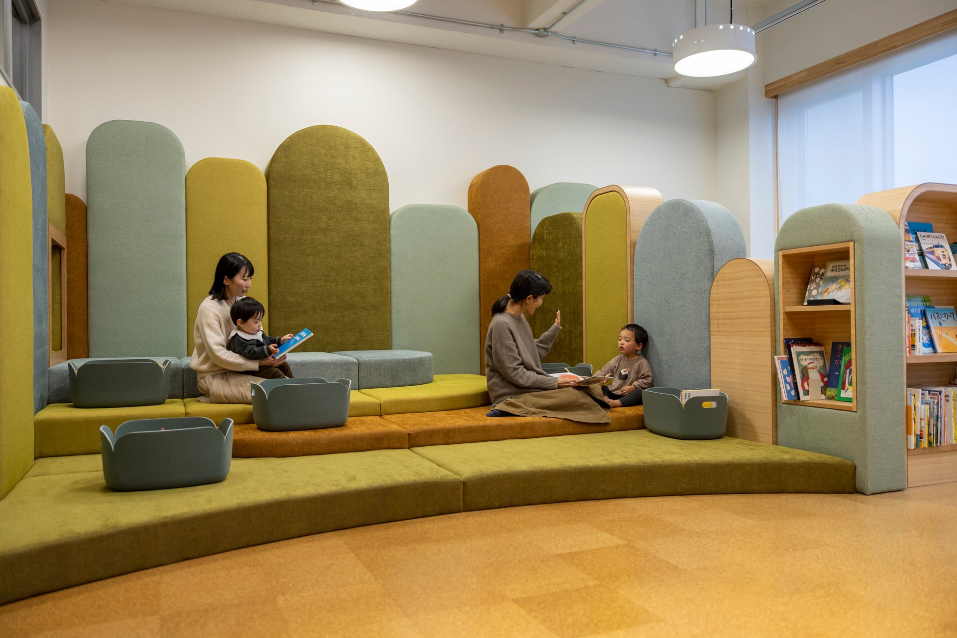 モコモコのクッションに囲まれた赤ちゃんの部屋やミニ劇場があり、えほんの読み聞かせや紙芝居も開催予定です。