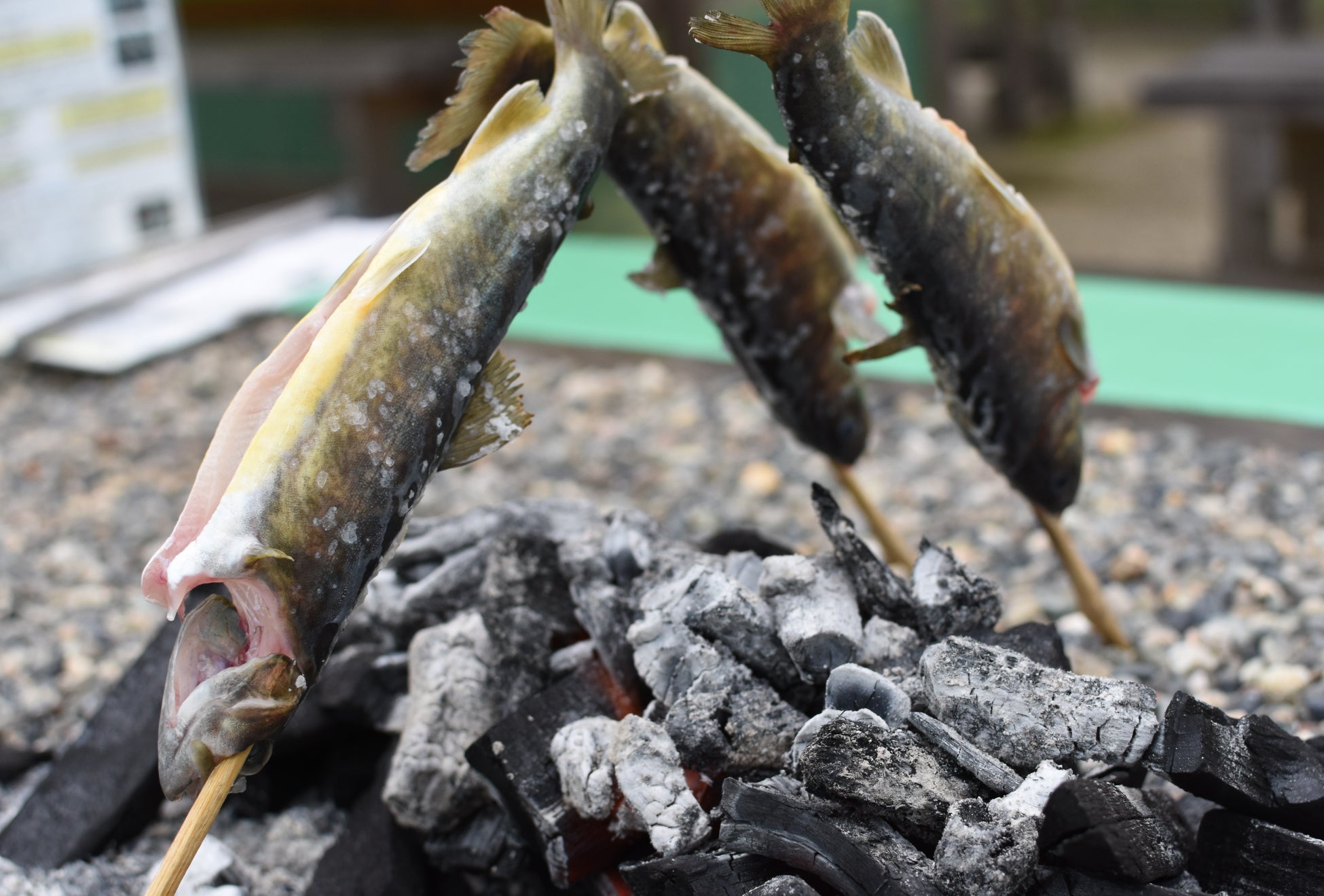 ※釣った魚は、1匹目まではツアー料金に含まれますが、2匹目以降はお買い求めください。イワナ・ヤマメ100g(約1匹)=380円。