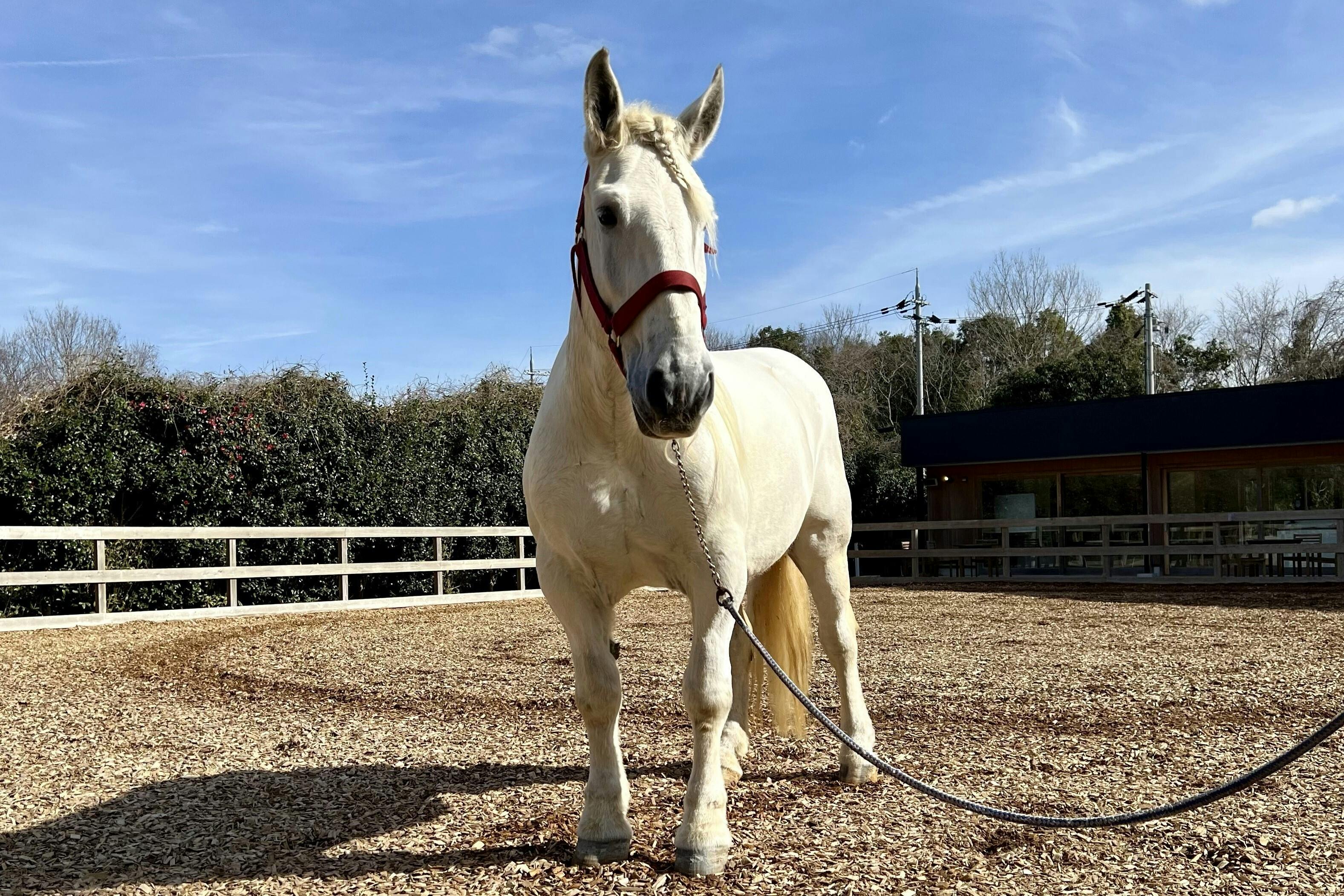 このプロジェクトに向けて馬車をひける大きな馬を探していたところ、運良くご縁があり、昨年の8月に TCCセラピーパークにやってきてくれました。