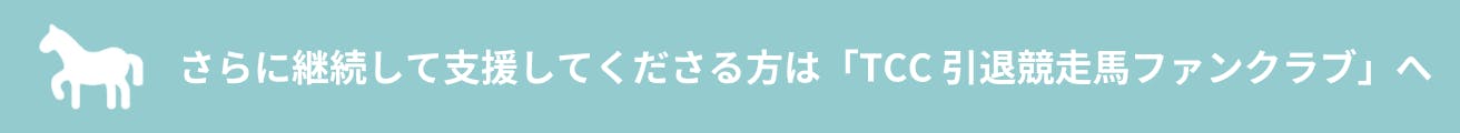 何か出来ることはないかと探していた所にTCC (Thoroughbred Community Club) の存在を知りました。直ぐに入会をし、僅かですがご支援させていただいております。