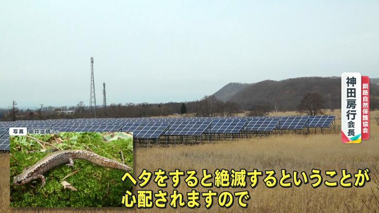 この辺の湿原の周り、あるいは湿原の中もメガソーラーだらけになるということで、キタサンショウウオの生息環境が非常に悪くなる。ヘタをすると絶滅するということが心配されますので、野生生物にとって大変なマイナスになるんだということも学んでほしいなと。