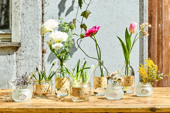 SABONでは店舗を彩る花々にも、本来廃棄されるはずだった花をアップサイクルしたドライフラワーを使用し、“花の命をできるだけ永く楽しむ”という提案を行っています。